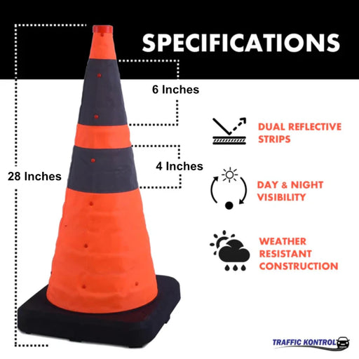 28" Collapsible Traffic Road Cones - 2 Reflective Collars - Safety Orange Features: Collapsible Design — Folds down to just 2.5 inches for easy s...