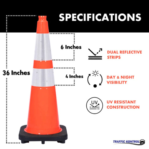 36" Traffic Safety Cone - 10 Lbs - Orange - 6" + 4" Inch Hi Intensity Reflective Collars Features: Lowest Bulk Wholesale Traffic Cone Prices Onlin...
