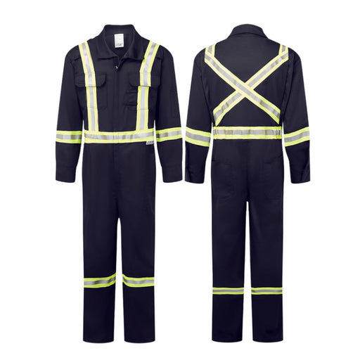 IFR Workwear® Avenger 7 Stripped Coverall - Style 3108 - X Back and Flame Resistant - Navy Features: Reflective Trim Material 7 oz – FR 88% cotton...