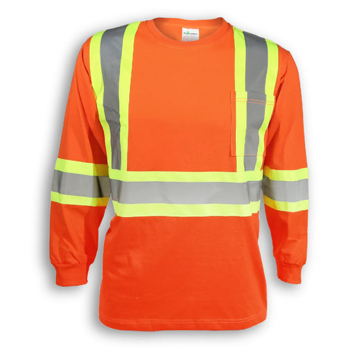 Big K Clothing® High Visibility Polyester Wicking Long Sleeve Safety Shirt - Orange - BK2008