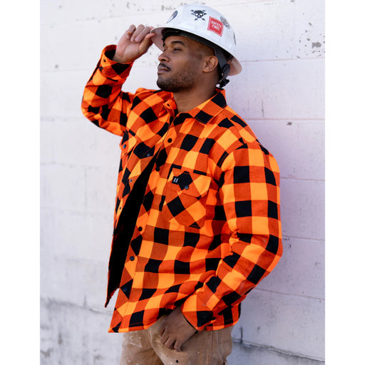 Forcefield® Hi Vis Orange/Black Buffalo Plaid Quilted Flannel Shirt Jacket - LC53QF-BPORBK