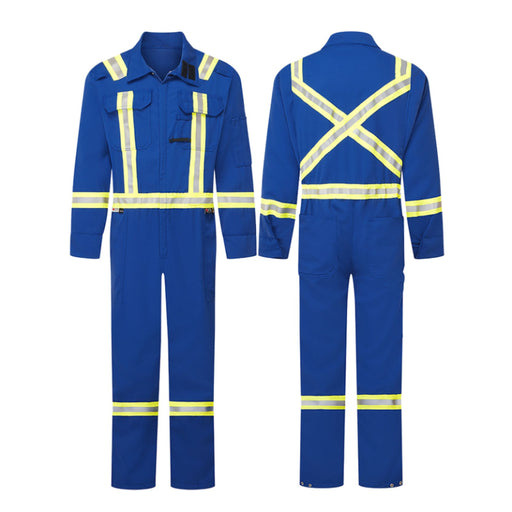 IFR Workwear® Avenger 7 Stripped Coverall - Style 3108 - X Back and Flame Resistant - Blue Features: Reflective Trim Material 7 oz – FR 88% cotton...