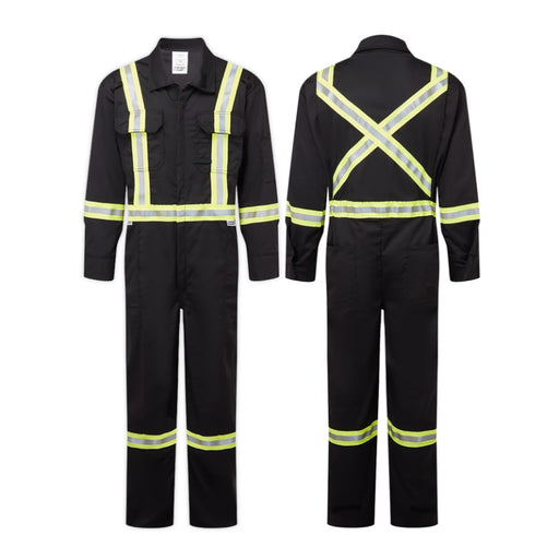 IFR Workwear® Avenger 7 Stripped Coverall - Style 3108 - X Back and Flame Resistant - Black Features: Reflective Trim Material 7 oz – FR 88% cotto...