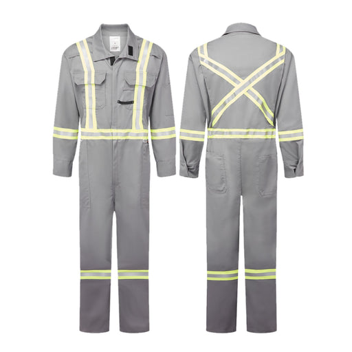 IFR Workwear® Avenger 7 Stripped Coverall - Style 3108 - X Back and Flame Resistant - Grey Features: Reflective Trim Material 7 oz – FR 88% cotton...
