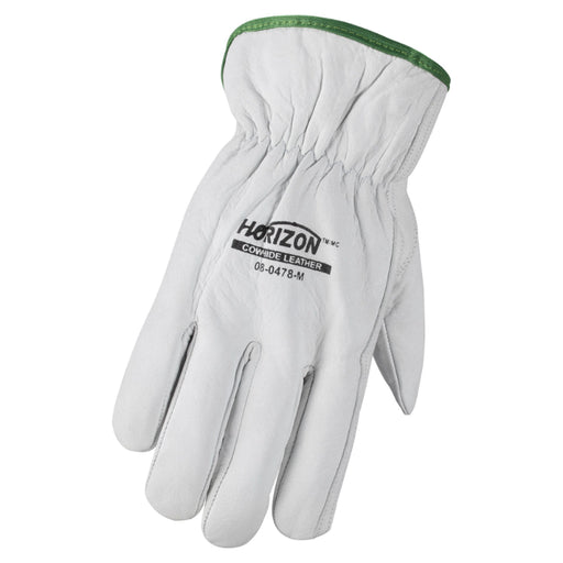 Horizon® Cowhide Leather Work Gloves - 21360 Features: Cowhide leather palm and fingertips Lined palm Cotton back with elastic Rubberized cuff In...