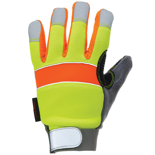 These gloves don't just protect your hands, they add to your visibility on the job site. Features: Polyester/Spandex back Synthetic Suede palm wit...
