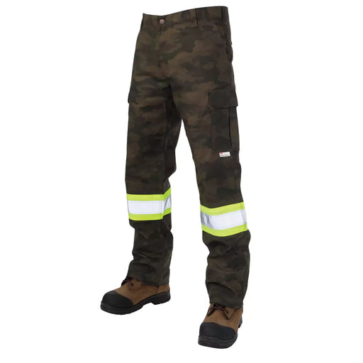 Tough Duck Relaxed Fit Camo Flex Safety Cargo Utility Pant - SP04 Features 3M™ Scotchlite™ 2" Reflective Material with 4 contrast backing Fly fron...