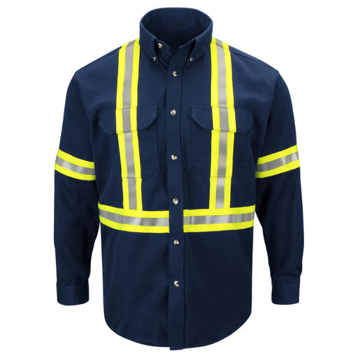 Bulwark® Men's Midweight FR Enhanced Visibility Uniform Shirt with Reflective Trim - SLUC