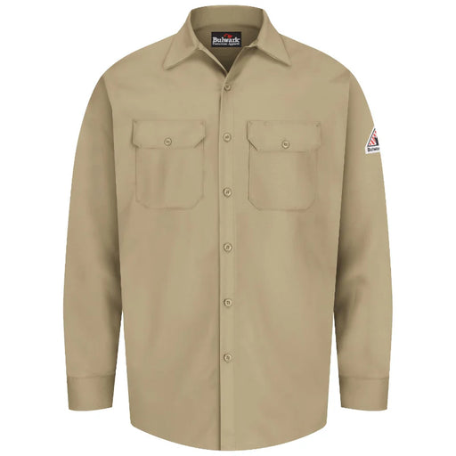 Bulwark® Men's Midweight Excel FR Work Shirt - SEW2 Features: Regular Fit Lay-flat collar Category 1 Protection Arc Rating ATPV 7.7 cal/cm2 Hemmed...