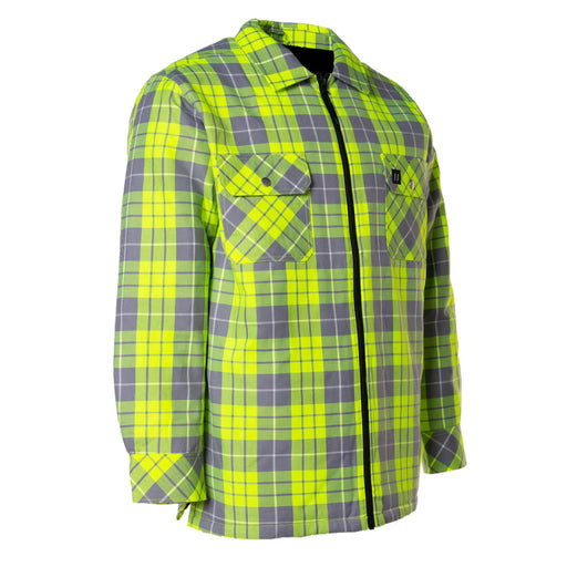 Forcefield® Hi Vis Lime Plaid Quilted Flannel Shirt Jacket with Front Zip - LC53QFZHT-HV