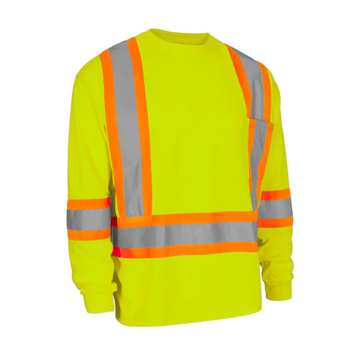 Forcefield® Hi Vis Bamboo Fabric Crew Neck Long Sleeve Safety Tee Shirt - BBCSAL Features: Crew-neck, long sleeves with a rib-knit cuff Front ches...