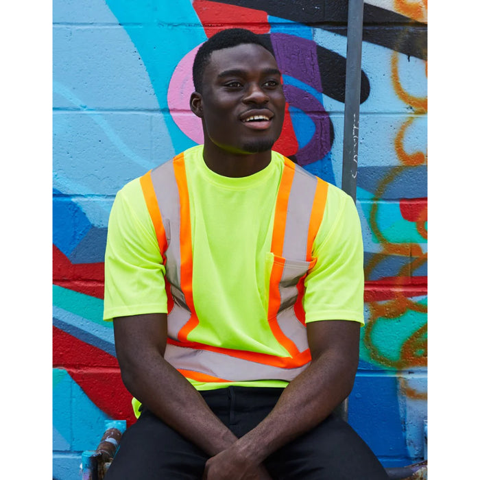 Forcefield® Hi Vis Crew Neck Short Sleeve Safety Tee Shirt with Chest Pocket - CBECSA