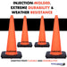 Traffic Kontrol® Traffic Cones are meticulously designed to provide optimum road safety and efficient traffic management. These cones are injection molded with premium PVC, ensuring durability and longevity in various environments. Featuring an indented handle top, these traffic cones offer convenient carrying options and provide a means for attaching tapes, enabling enhanced visibility and guidance. The handle design facilitates easy transportation and deployment, ensuring efficient use in any situation. These traffic cones adhere to industry safety standards, including MUTCD (Manual on Uniform Traffic Control Devices). These standards ensure that Traffic Kontrol® Traffic Cones meet the highest quality and performance criteria, assuring reliable and safe traffic control measures. The Traffic Kontrol® Traffic Cones are constructed from flexible and durable PVC. This material provides resilience and longevity, while the black rubber base offers stability and prevents rolling, even when the cone is knocked over. The square base design further enhances stability, ensuring the cones remain in place and maintain their intended function. With a temperature range spanning from -15°C to 55°C (5°F to 131°F), these traffic cones can withstand a wide range of climates, making them suitable for use in various geographic locations. Choose Traffic Kontrol® Traffic Cones for a comprehensive and reliable solution that prioritizes road safety. Trust Traffic Kontrol® Traffic Cones to meet your traffic control needs and ensure the safety of road users.