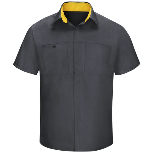 Red Kap® Men's Short Sleeve Performance Plus Shirt - Oilblok Technology - Charcoal / Yellow Mesh - SY42 Exclusive OilBlok Technology tackles the t...